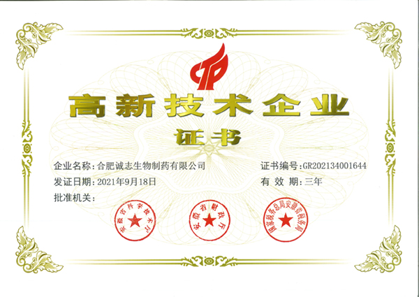 誠(chéng)志生物2021年高新技術(shù)企業(yè)證書(shū)
